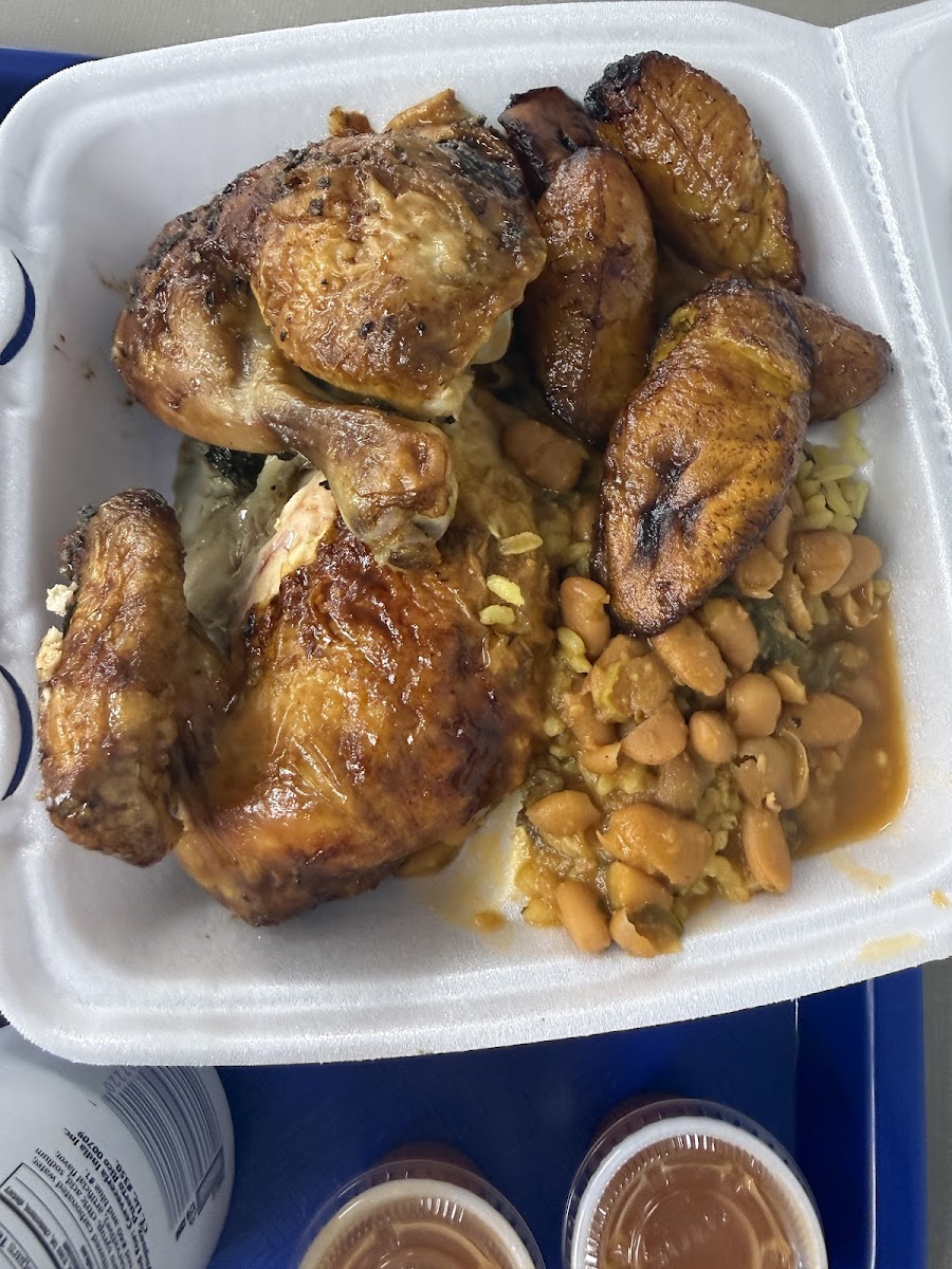 Always try places yourself. Girls were nice, the place looked clean, the food tasted good and for a good price. Didn't try the desserts. We bought combo familiar #3 mitad pollo mitad lechón y ambos buenos de sabor